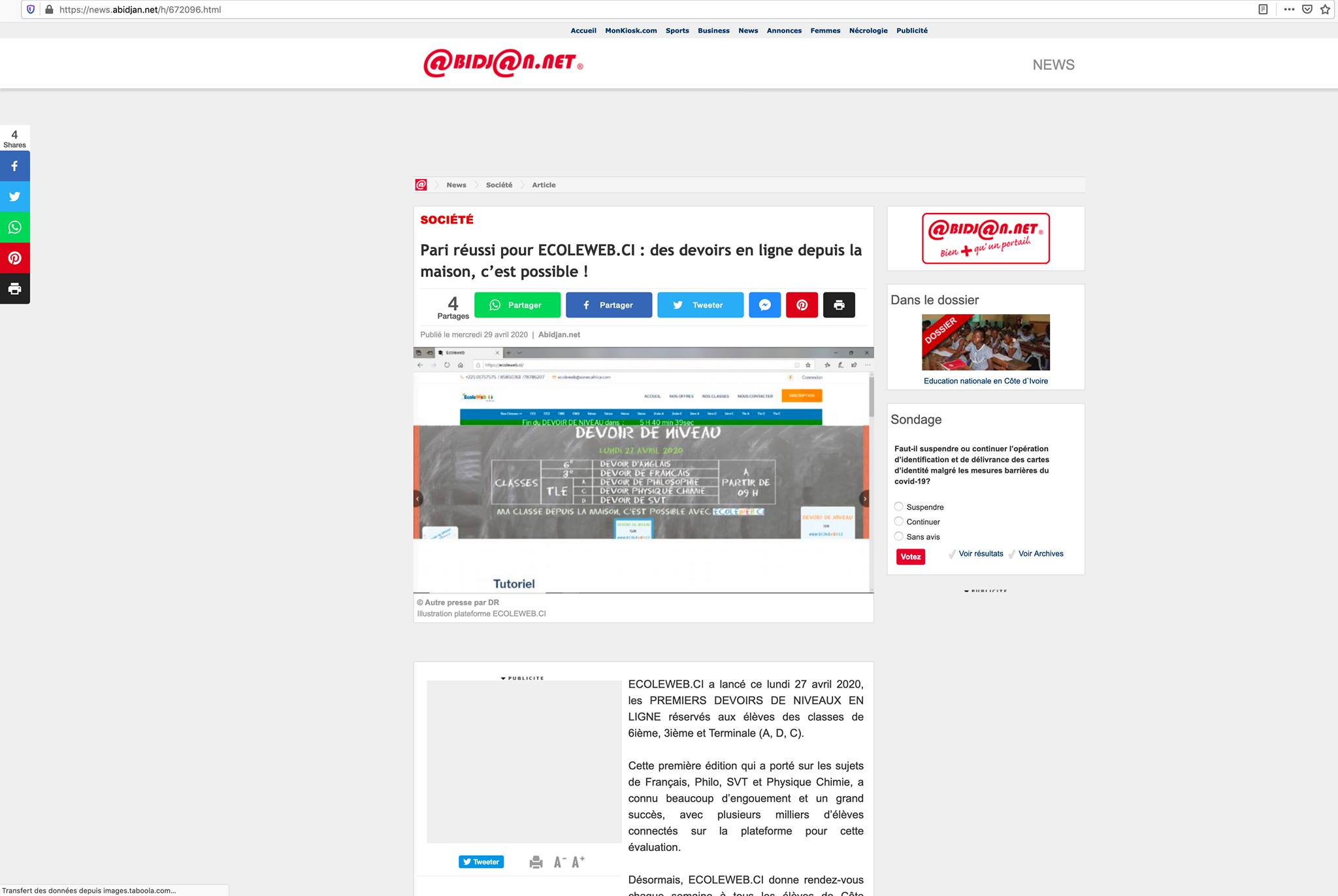 Pari réussi pour ECOLEWEB.CI : Des Devoirs en Ligne Depuis la Maison, C’est Possible !